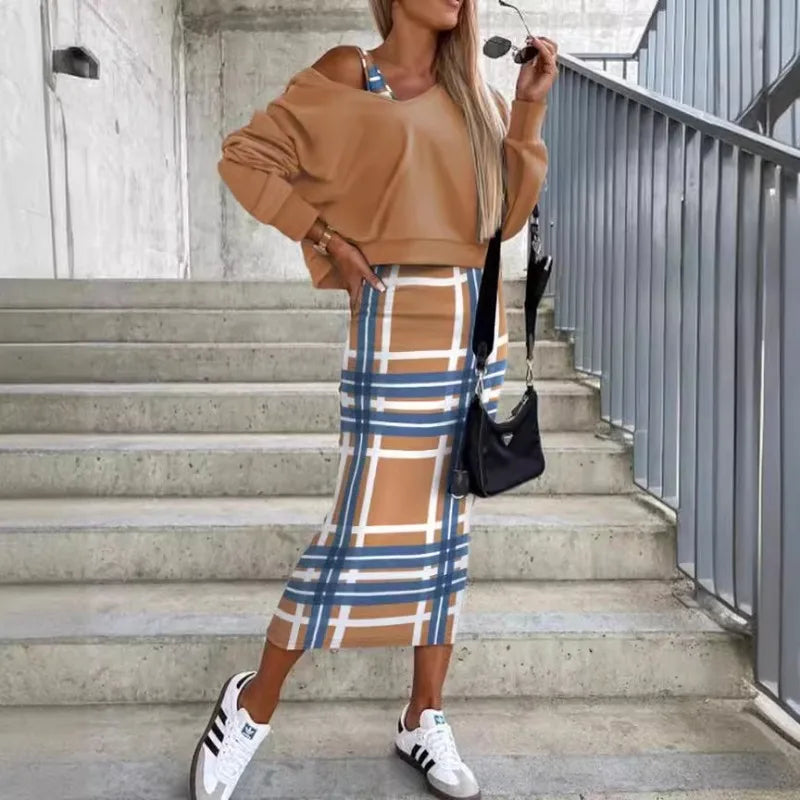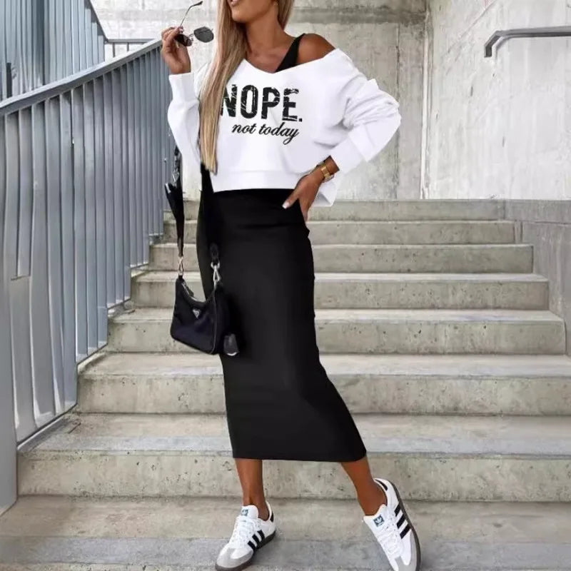 Abbigliamento donna Sense Of Design Nuovi Arrivi Primavera Autunno Abbigliamento Donna Maglione Cappotto Base Slim Fit Gonna Completo Due Pezzi