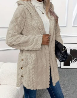 Women's Lazy Style Cardigan Autumn Winter Latest 2025 Argyle Textured Pattern Hooded Buttoned Fleece Coat Open Front jacket