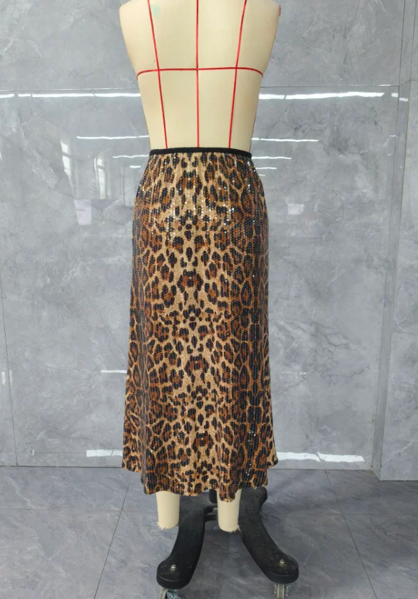 Abito da donna in stile urbano per pendolari, autunno inverno 2024, ultima moda, gonna con paillettes all-over e motivo leopardato, gonna a vita alta